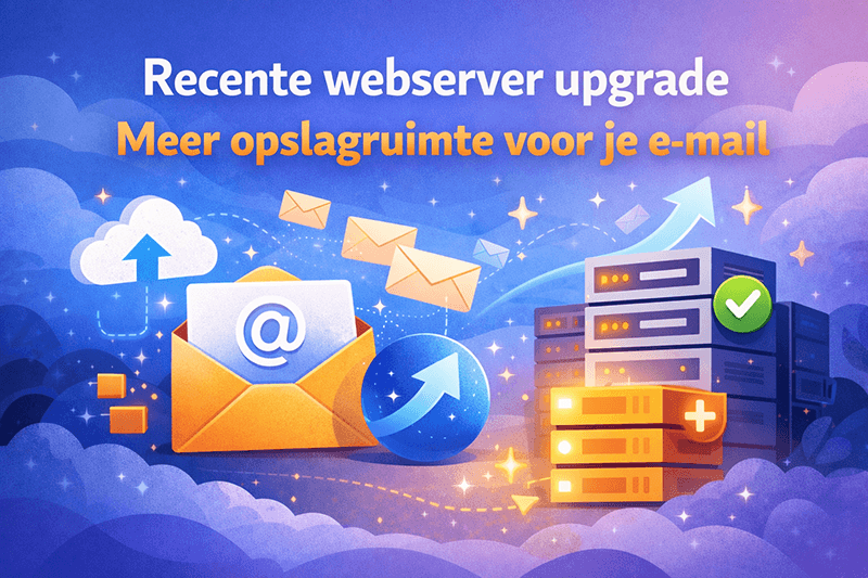 Onze webservers zijn vernieuwd en geoptimaliseerd. Dit zorgt voor betere prestaties, extra stabiliteit, verbeterde beveiliging en meer mogelijkheden voor je website en e-mail. Alle websites zijn afgestemd op deze upgrade, zodat alles optimaal blijft werken.
